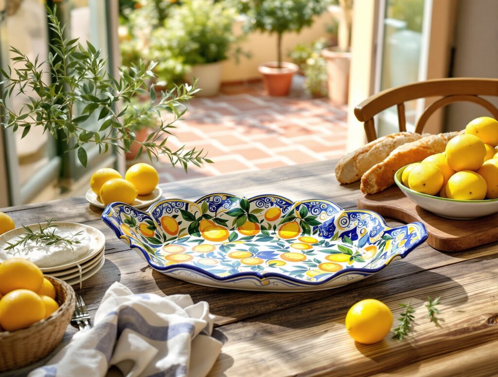 Et italiensk citronformet serveringsfad i keramik er både smukt og funktionelt. Det er skabt af traditionel italiensk fajance og udstråler